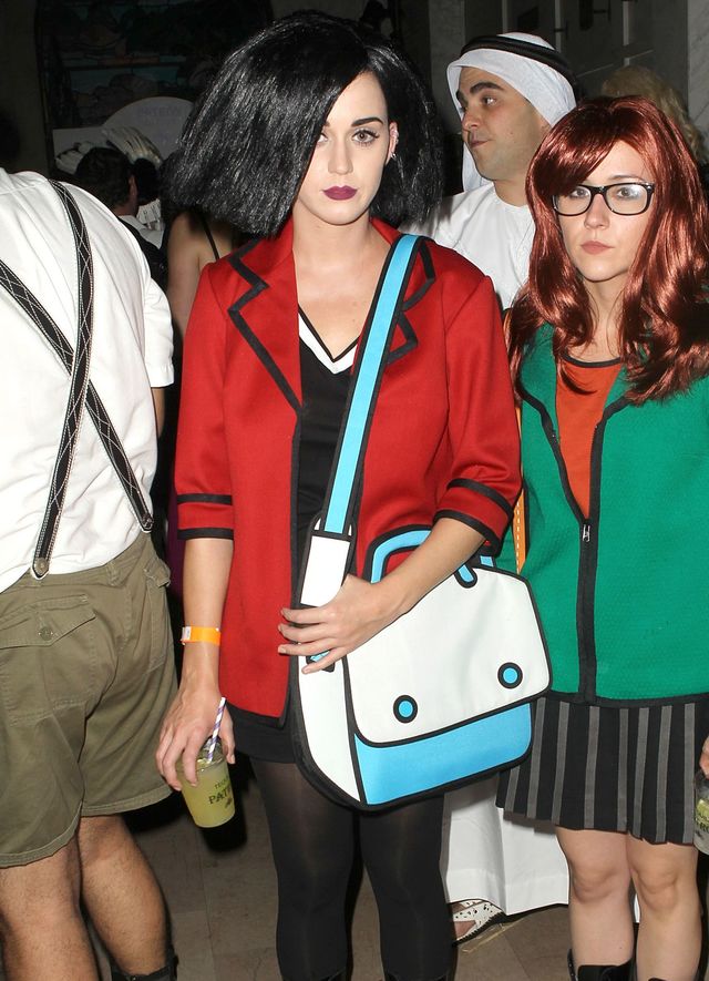 ¡Así es! Katy se disfrazó de su personaje favorito de la serie Daria (que también podemos verla a su lado), ¡hasta logro que la ropa parezca una caricatura!