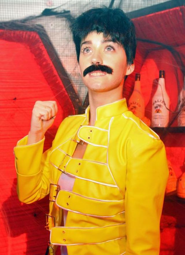 Katy se disfrazó del líder de Queen, su héroe, ¡hasta incluyó bigote! Look completo.